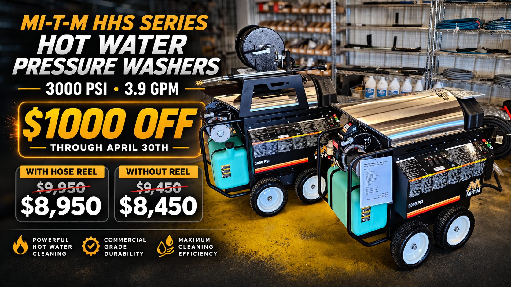 At Dakota Power Wash Equipment, we specialize in delivering high quality hot water pressure washers to meet your your specific needs and are a full line dealer of Mi-T-M equipment.