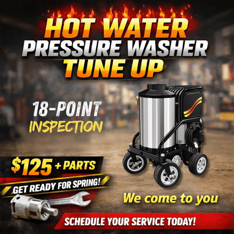 Click here to schedule your Spring Tune-Up today and start the season with a pressure washer that’s ready to tackle your equipment or facilities.