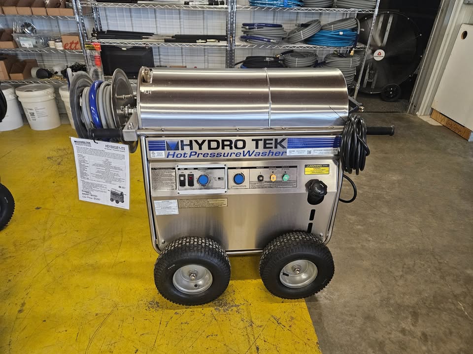 Gently Used Hydro Tek HD15002E1-ITS – 1500 PSI at 2 Gallon Per Minute. 110V Hot Water. Integrated Hose Reel, 50ft of Hose. 7 Year Pump Warranty, Lifetime Coil. On Sale Now $3900.